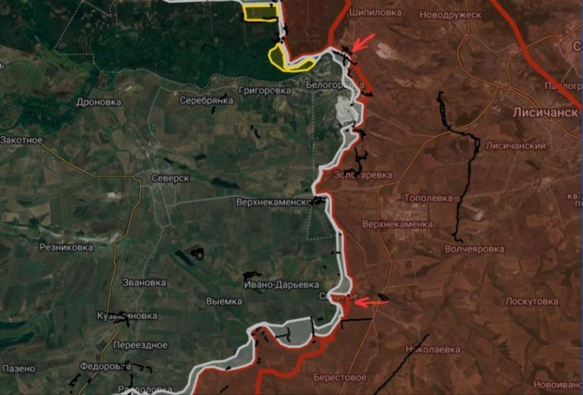 На Купянско-Лиманском направлении южнее Табаевки и западнее Крахмального российские войска продвинулись на участке шириной до 3.05 км на глубину до 3.25 км, войдя в Песчаное с юго-востока.