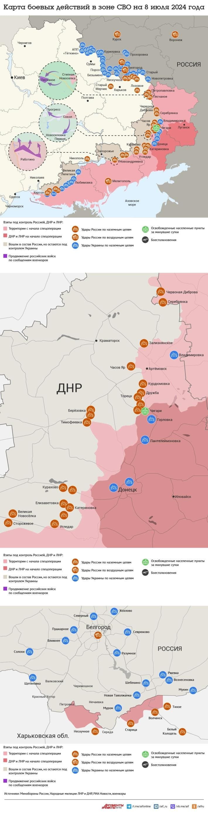 Обнародована карта боевых действий на Украине по состоянию на 8 июля по данным на 17:00 мск: свежие детали
