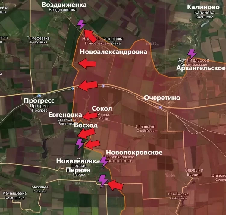 Также постепенное продвижение идут в Евгеновке и Восходе. Помимо продвижения в самих сёлах, удалось расширить зону контроля между Восходом и Новосёловкой Первой, информирует PulsePen.