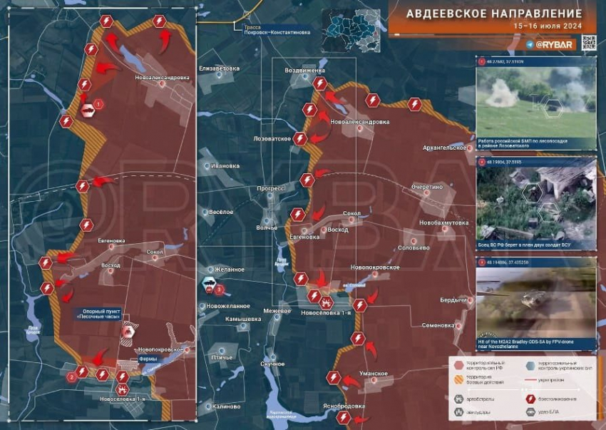Новая карта боевых действий в зоне СВО на Украине сегодня, 17 июля 2024 года