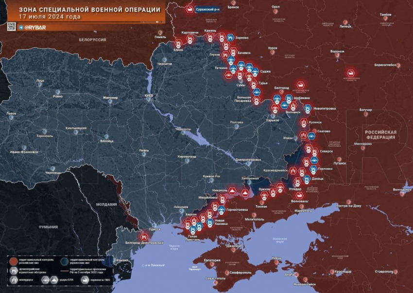 Главные новости » Эксклюзив » Свежая карта боевых действий на Украине: обстановка на фронтах на 18.07.2024