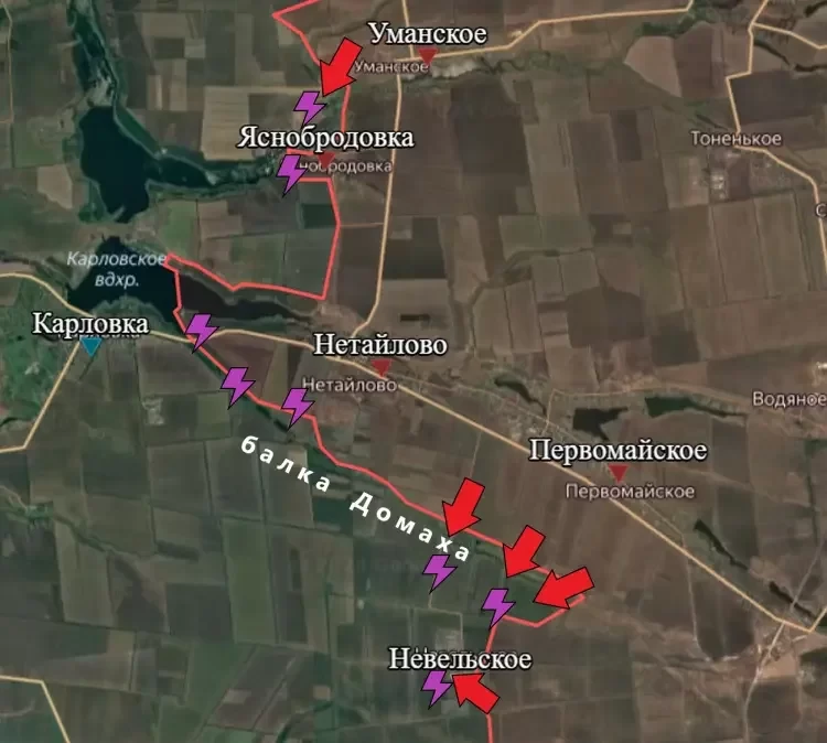 К северо-западу от Кисловки идут бои за Степовую Новосёловку. Ранее ожидалось, что после взятия Кисловки, Ивановки и Котляровки, Степовая Новосёловка довольно быстро падёт. Однако ВСУ смогли оказать достойное сопротивление. Сообщается, что сейчас наши бойцы пытаются продвинуться в лесополосе вдоль железнодорожной ветки северо-западнее Кисловки, сообщает PulsePen.