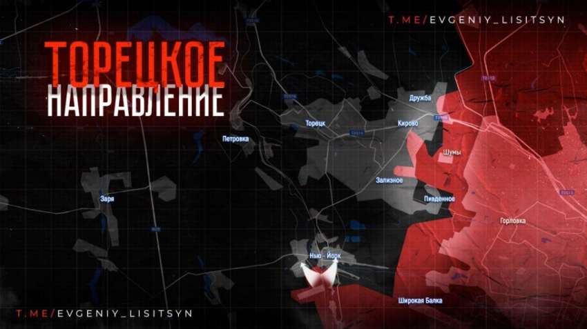 На Торецком направлении в Новгородском (Нью-Йорке) российская армия вошла в тыл ВСУ-шникам с восточной стороны и замкнула там два батальона ВСУ. В окружение рискуют попасть около тысячи украинских солдат. Также на этом участке фронта ВС РФ заняла большую часть многоэтажек в Кирово (Северном).