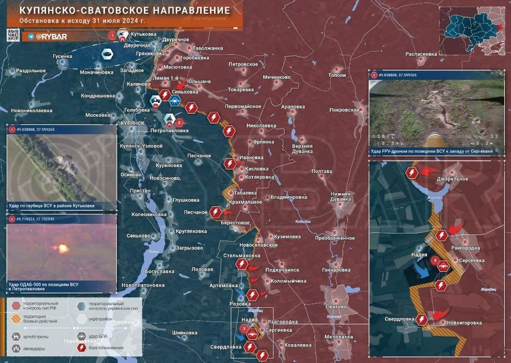 Новая карта боевых действий в зоне СВО на Украине сегодня, 1 августа 2024 года