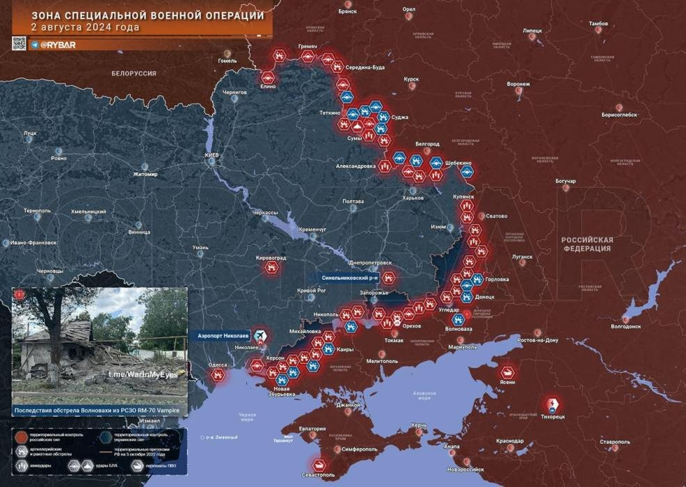 Новая карта боевых действий в зоне СВО на Украине сегодня, 3 августа 2024 года