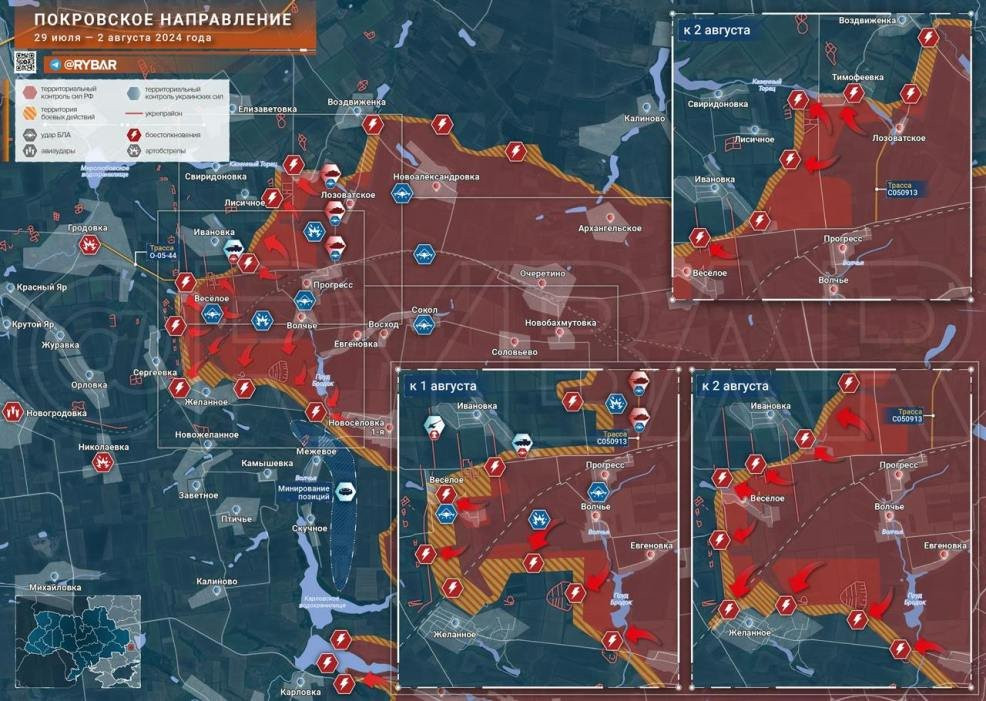 Свежая карта боевых действий на Украине: обстановка на фронтах СВО на 03.08.2024