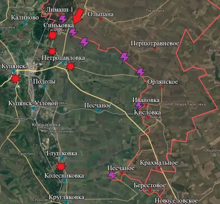 На Купянском направлении  наши бойцы продолжают стараться отбить у ВСУ Синьковку, а также продвигаются восточнее и южнее села, закрепились в лесопосадках. Идут встречные бои неподалёку от Петропавловки, а также в районе Ивановки и Кисловки.