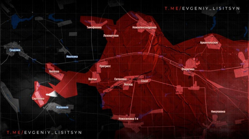 На Покровском направлении продолжаются бои за Желанное. Тут нашим парням удалось зацепиться за восточную окраину. В самом селе противник организовал мощную оборону, которую российская армия пытается обойти с флангов. Также сообщается о продвижении в Лисичном, Ивановке и освобождении большей части Сергеевки. Далее по курсу - Гродовка, довольно крупный поселок в окрестностях Мирнограда.