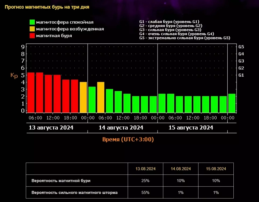 Главные новости » Эксклюзив » Магнитная буря сегодня, 13 августа: появились детали о сильных геомагнитных колебаниях (график)