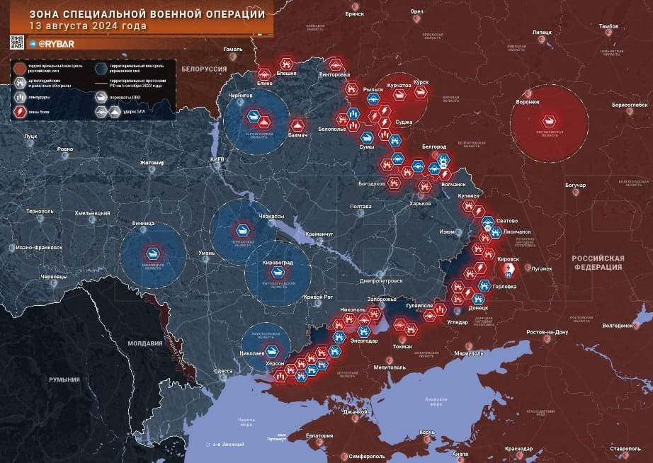 Новая карта боевых действий в зоне СВО на Украине от 14.08.2024