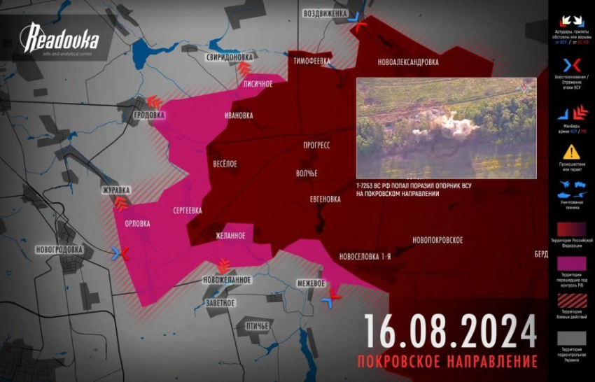 От Желанного ВС РФ прорвались и к Гродовке, на окраинах которой идут бои. Русская армия также вышла к Новожеланному и Новогродовке. Их освобождение - дело времени. Неизбежность этого понимают и власти незалежной, призвавшие к эвакуации из Покровска и Мирнограда. Эти города, наравне с Селидово, являются логистическими узлами ВСУ, а также центрами угледобывающей промышленности.