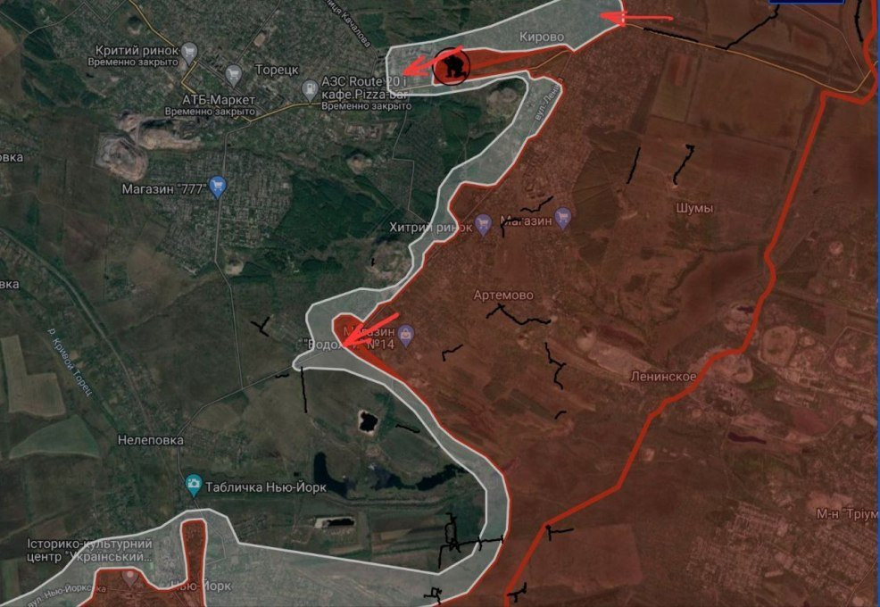 На Торецком направлении в Пивничном (Кирово) российские войска расширили контроль территории, продолжаются штурмовые действия на восточной окраине Торецка.
