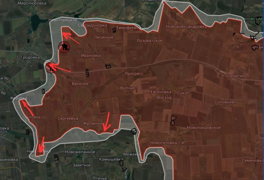 На Покровском направлении российские войска давят в районе Новоторецкое. В Гродовке ВС РФ ведут штурмовые действия вдоль улиц Заводская и Донецкая. Под контроль российских войск перешла часть Журавки, продолжается зачистка Николаевки. Также ВС РФ продвинулись южнее Желанного.