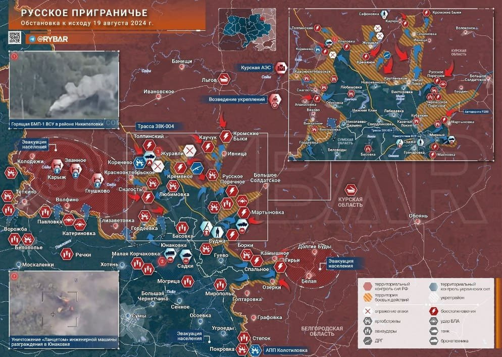 Новая карта боевых действий в Курской области по данным на 20.08.2024