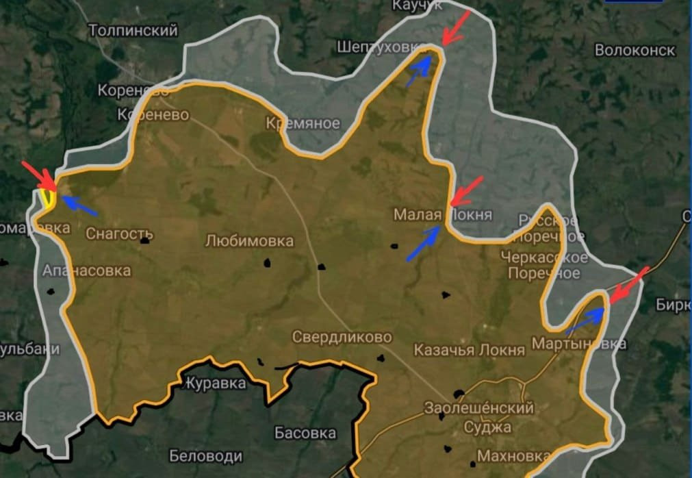 В Курском приграничье на Кореневском участке продолжаются боестолкновения в районе Комаровки, в северной части урочища Краснооктябрьское и в районе Коренево. ВСУ давят в центральной части Краснооктябрьского. На Суджанском участке ведутся активные боевые действия в районе Малой Локни, Русского Поречного и Мартыновки. ВСУ тактических успехов не имели. Проводят перегруппировку, перебрасывают дополнительные силы и пытаются закрепиться на захваченной территории.
