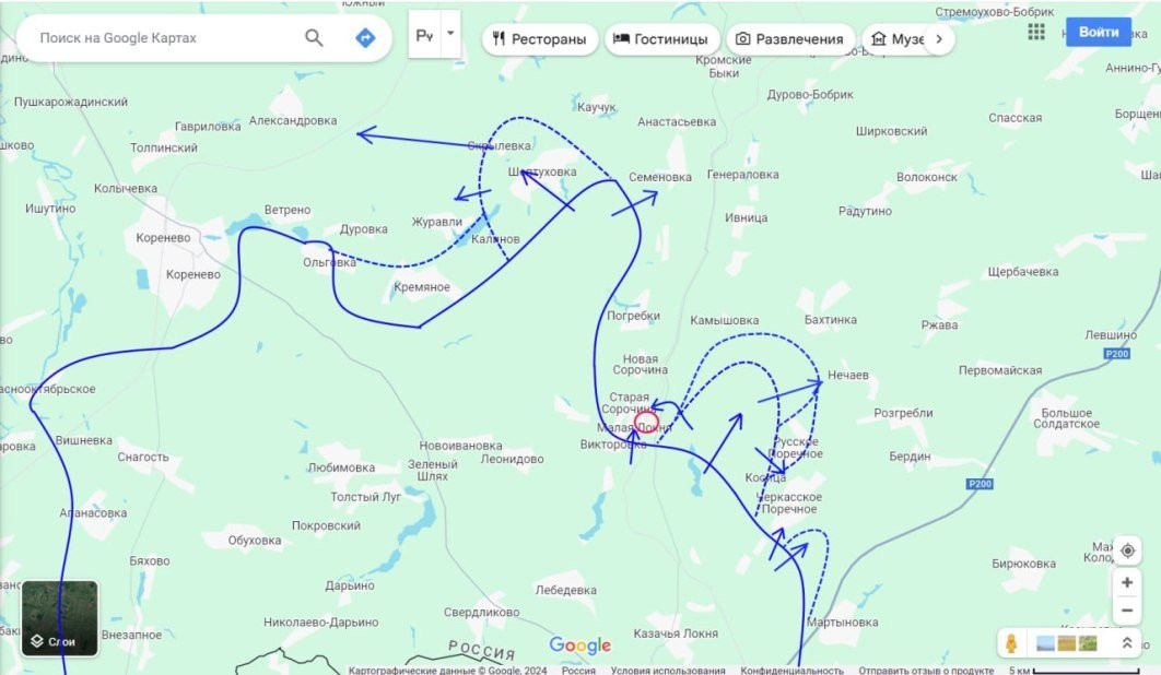 В Суджанском районе продолжаются ожесточённые бои в районе Малой Локни, Нечаева, Русского Поречного, Русской Конопельки. Судьба Мартыновки - под вопросом. Некоторые OSINT-проекты сообщают, что населённый пункт находится под контролем ВСУ, а военные блогеры - что у населённого пункта Армия России отражает накаты противника: