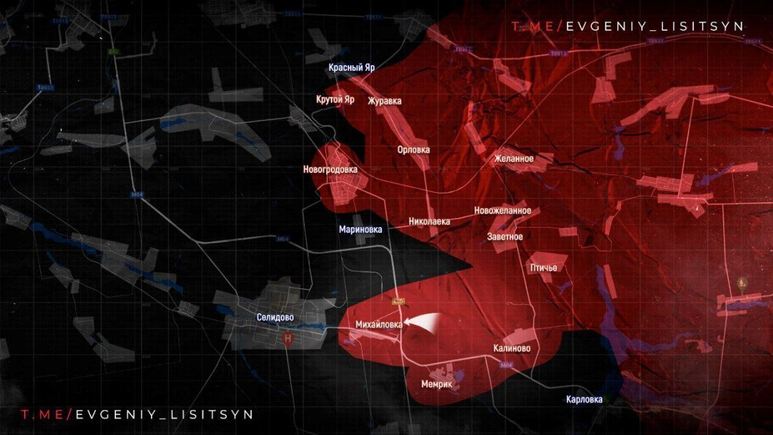 На Покровском направлении ВС России развиваю успех после боев за Карловку, сообщают о боях за Галицыновку. Утром каналы врага сообщили, что северная часть Галицыновки перешла под наш контроль. Началось сражение за Селидово и Украинск. В целом темпы наступления Армии России на направлении насолько высоки, что вызывают опасения у экспертов по поводу риска растянуть логистику или попасться на замысел противника организовать фланговые удары.