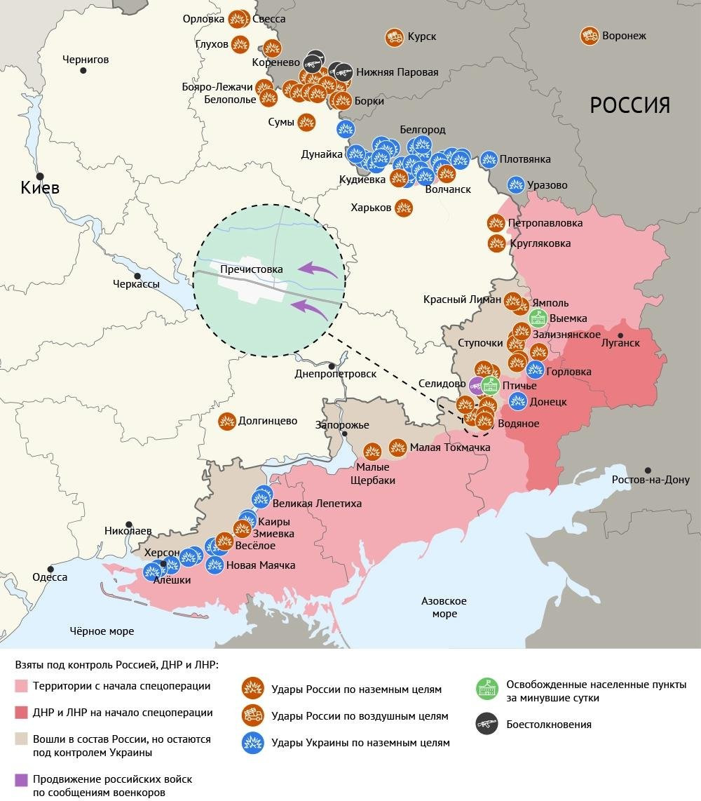 Новая карта боевых действий на Украине в зоне СВО по данным на 07:00 мск от 3 сентября