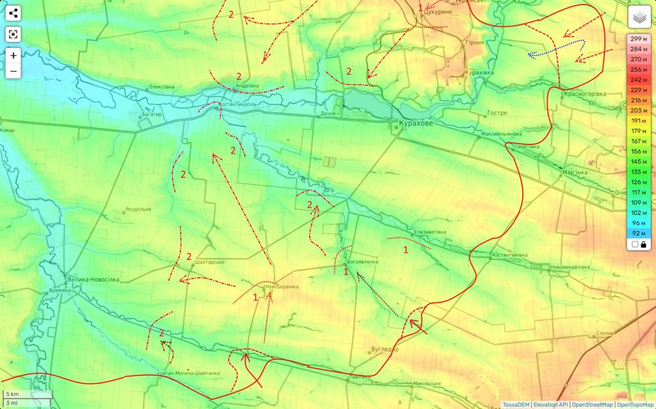 В Кураховской наступательной операции всё определяется рельефом и реками. На самом деле бои за Угледар и соответственно освобождение города, как я понимаю, это не цель всей операции. А только первая фаза большого наступления с целью разгрома крупной группировки ВСУ на западном Донбассе.