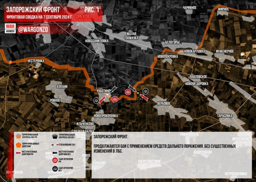 Обновлённая карта боевых действий на Украине по данным на 13:00 мск от 07.09.2024