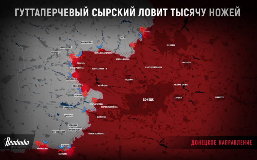На Покровском направлении МО сообщило об освобождении Калиново, что на подступах к Селидово. ВС РФ бьют по мостам, через которые ВСУ снабжали группировку в Селидово, еще минимум один мост разрушен. Очень тяжелые бои идут у Украинска, куда, по данным с мест, ВСУ подтянули свои стратегические резервы. ВС РФ закрепили успех вчерашнего продвижения между городами Украинск и Горняк, достигнув ж/д от Селидово до Горняка. Сегодня, зайдя в Украинск с юга и в Горняк с севера, наши продолжают атаки. Выше по линии фронта ВС РФ мощно атакуют в центре Гродовки, продвинулись примерно на 1 км. Движения в сторону Мирнограда или Покровска (Красноармейска) не наблюдается.