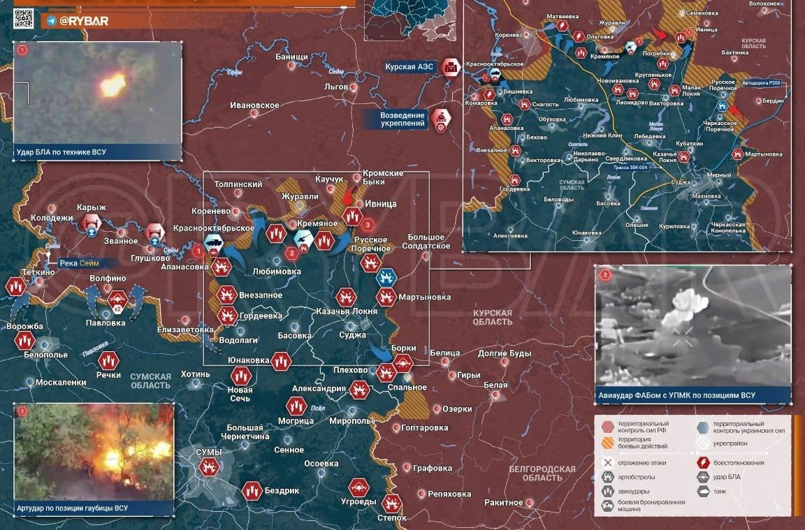В Суджанском районе, южнее Хитровки авиаудару ВКС РФ подверглось скопление сил противника в лесополосе. Накопление личного состава и бронетехники в данном месте подтверждает нахождение Погребков как минимум в «серой зоне».