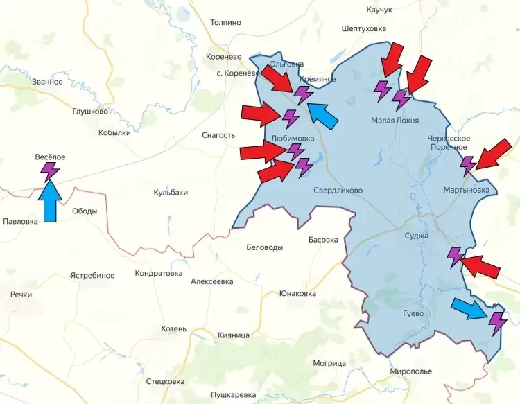 Продолжаются бои неподалёку от Малой Локни и близ Мартыновки. Оба населённых пункта пока что под врагом. Подразделения Армии России действуют на подступах к ним, информирует PulsePen.