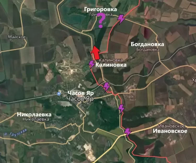 На Константиновском направлении зафиксировано продвижение ВС РФ севернее Калиновки как раз в сторону Григоровки. На западных окраинах Калиновки продолжаются бои. Противник пытается не дать нашим бойцам продвинуться к северным окраинам Часов Яра.