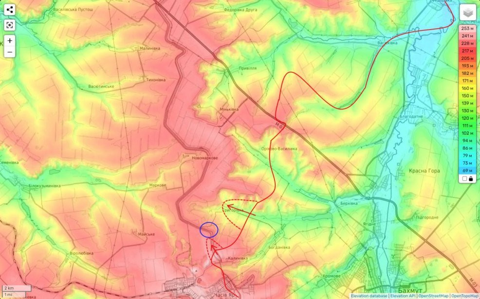 На ЧасовЯрском направлении вчера наши части пытались развивать свой успех севернее города в районе западной части н.п. Калиново. Они расширяли свой плацдарм на западном берегу канала «Северский Донец-Донбасс» в ширину.