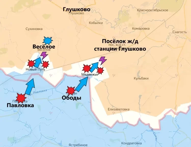 Из Курской области накануне пришли официальные подтверждения освобождения 810-й бригадой морской пехоты села Борки на юго-восточном фланге, а также Успеновки. Помимо этого не утихают бои возле Веселого. По сравнению с предыдущими двумя днями, нашим бойцам удалось стабилизировать ситуацию а этом районе. Также наши парни продвинаются к Любимовке и уже закрепились на окраинах этого села.