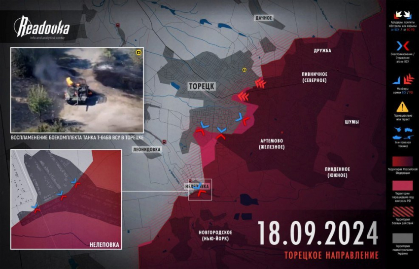 Русская армия вышла к многоэтажкам в центре Торецка, находящимся между улицами Дружбы и Маяковского. Штурмовать их наши подразделения начали со стороны Центральной улицы, ведя бой также за здание детской поликлиники. ВС РФ удалось пробиться к высоткам после того, как были заняты ИК-2 и хлебобулочный комбинат. Овладение многоэтажками в центре позволит сильнее вбить клин между частями ВСУ в городе, информирует Telegram-канал Readovka.