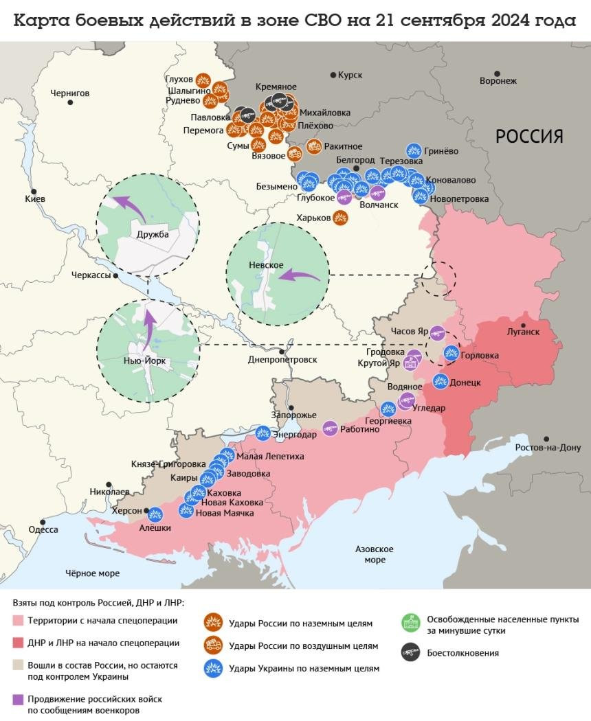 Главные новости » Эксклюзив » Свежие новости СВО на 21.09.2024. Карта боевых действий на Украине на сегодня, обстановка на фронтах