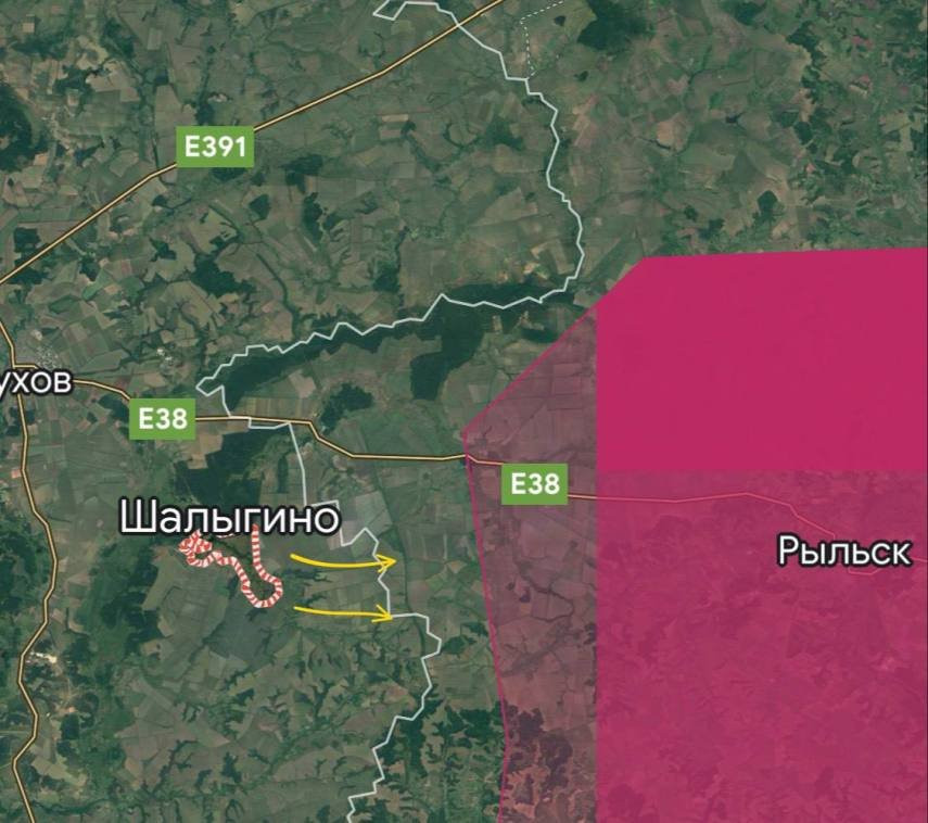 Военкоры сообщают о том, что от Шалыгино наблюдается активность штурмовых групп врага и концентрация резервов, по всей видимости попытки прорыва будут и на Рыльск.