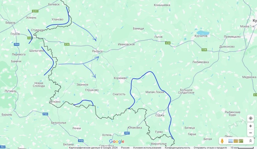 Интересен также тот факт, что украинские войска в последние два дня прекратили обстрелы понтонных переправ в районе Глушково. Это может быть тактическим шагом со стороны ВСУ, чтобы дать возможность российским силам ввести больше резервов, после чего украинская сторона может перейти к более масштабной атаке.