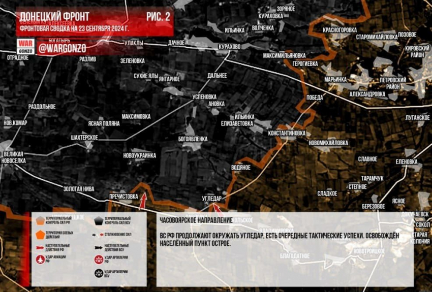 Новая карта боевых действий в зоне СВО на Украине на 23 сентября 2024