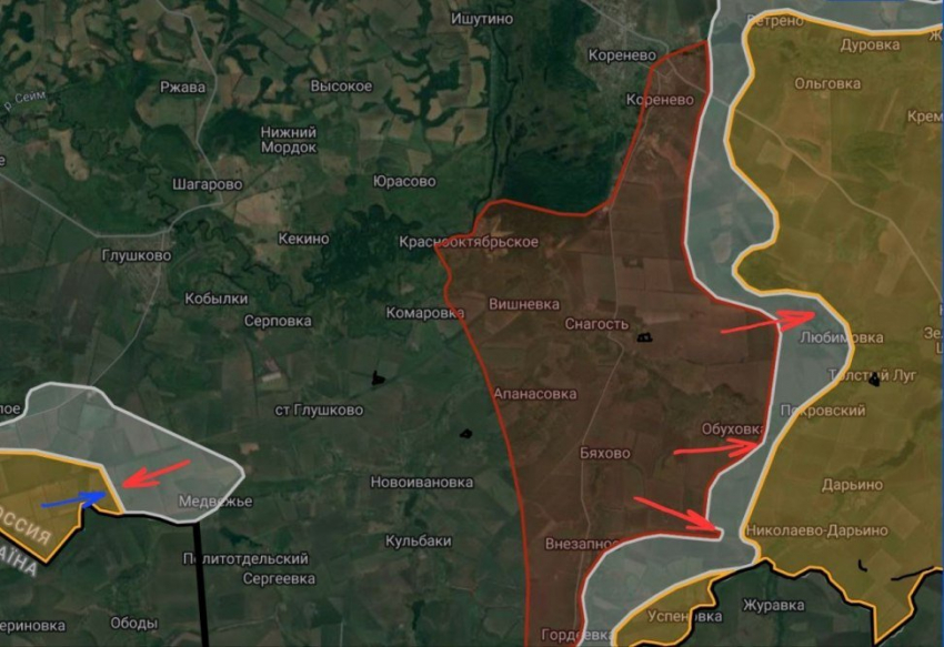 На Покровском направлении идут бои в восточной части Николаевки. Наши войска развивают успех и продолжают окружать Селидово. По последним данным, ВС РФ перерезали ж/д ветку севернее Цукурино и уже штурмуют его восточные окраины.