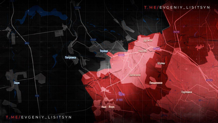 На Торецком направлении ВС РФ зачистили укрепрайон ВСУ в районе канала Северский Донец-Донбасс к северу от Дружбы. В Торецке есть продвижение примерно на 1 км. Наши парни поразили шахтный ствол шахты Центральная, который служил ВСУ укрытием, сообщает военкор Евгений Лисицын в своем Telegram-канале.