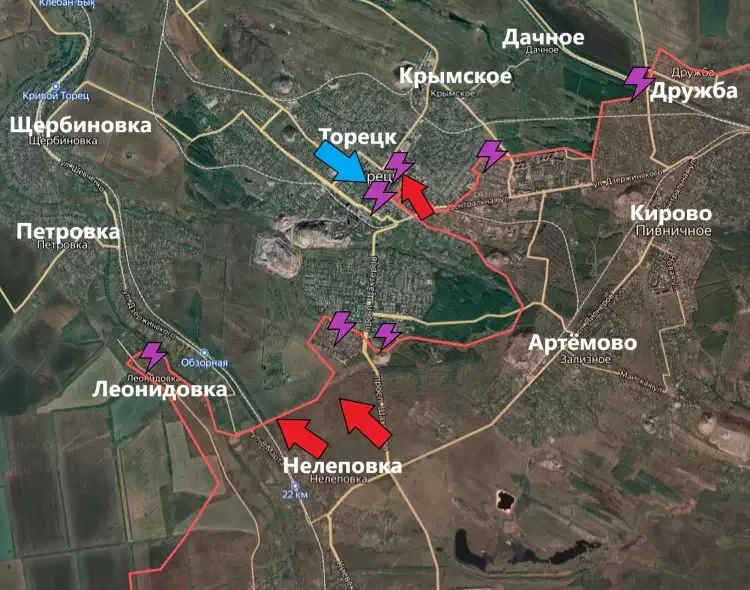 Минобороны России сообщило об освобождении Нелеповки. После этого перед бойцами Армии России открывается два важных направления - более безопасное (с точки зрения тыла) продвижение на южных окраинах Торецка и более свободное продвижение вдоль железной дороги в сторону Леонидовки, Петровки и Щербиновки.