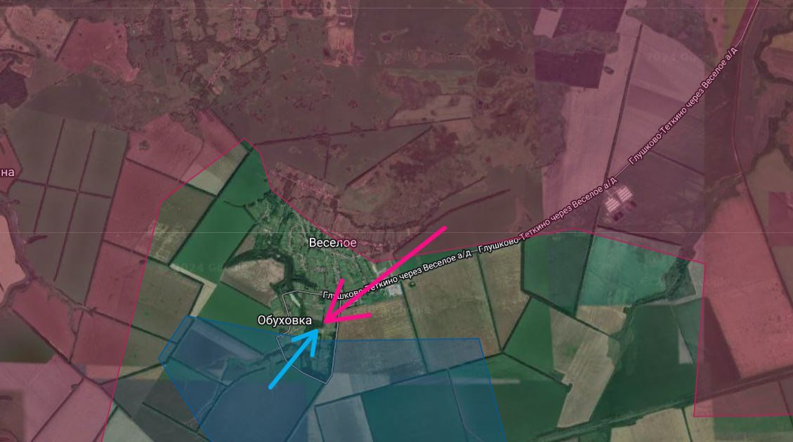 В Глушковском районе российские войска восстановили некоторые из утраченных ранее позиций в районе населенного пункта Веселое. На текущий момент продолжаются боестолкновения на подступах к селу.
