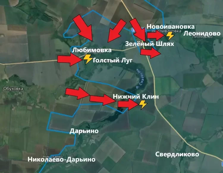 Также похоже, что наши бойцы пытаются взять в полуокружение и Черкасскую Конопельку, которая располагается чуть севернее.