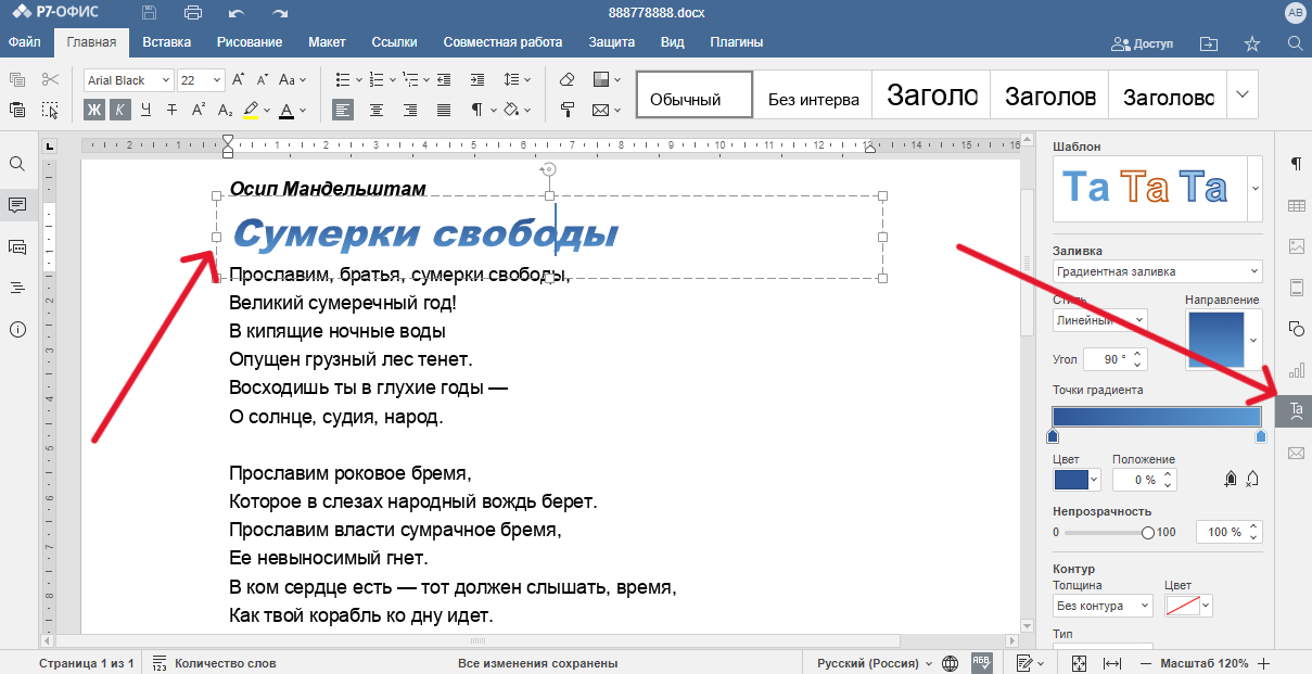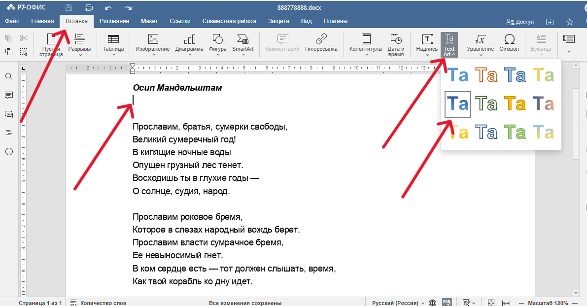 Главные новости » Эксклюзив » Стало известно, как добавить объект Text Art в документ «Р7-Офис»