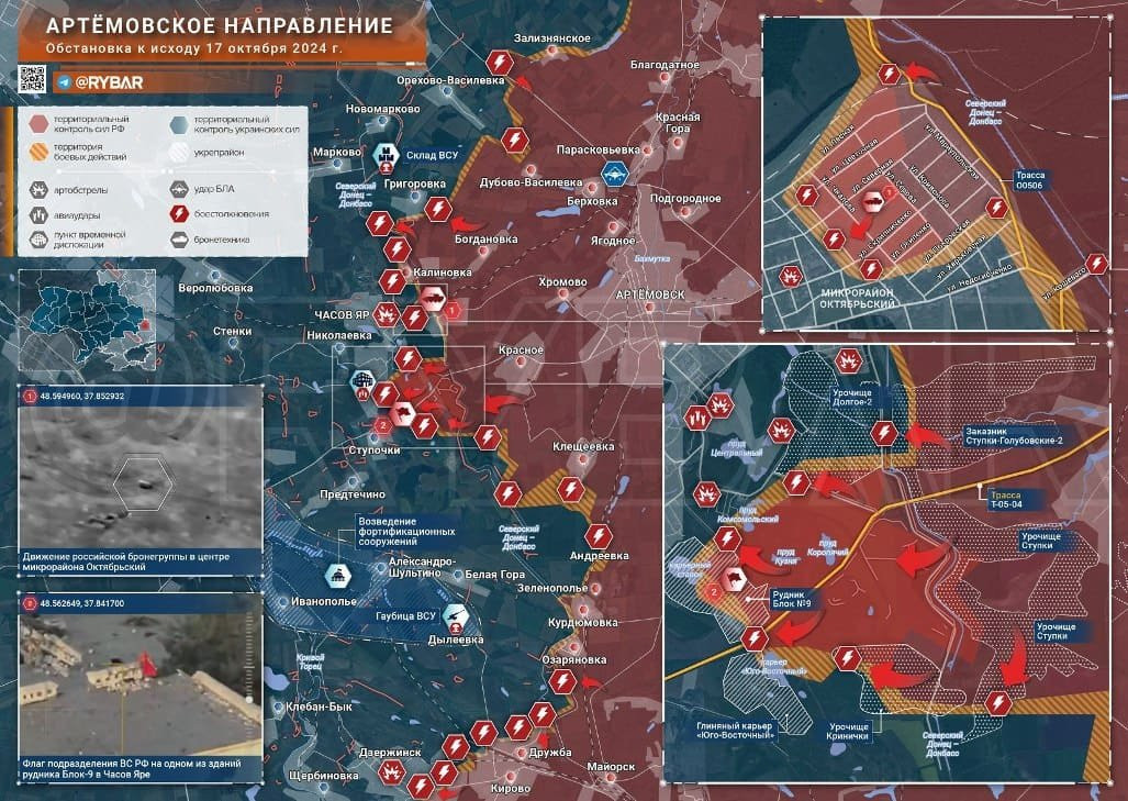 На Артемовском направлении российские войска в результате серии успешных атак заняли территорию рудника Блок-9 на южных подступах к Часов Яру, сообщает Telegram-канал "Рыбарь".