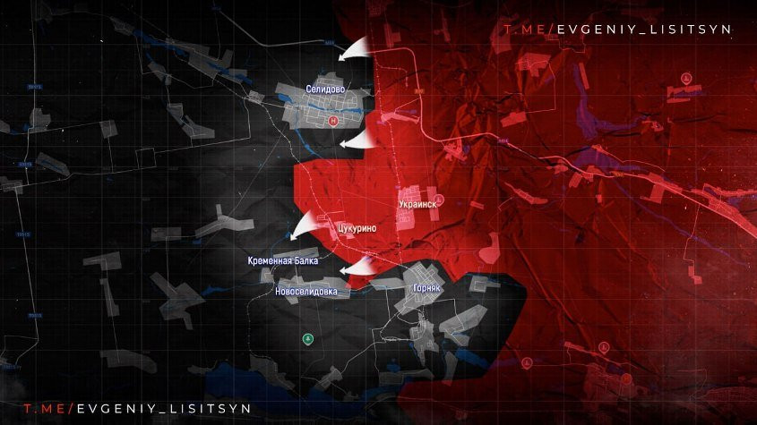 На Покровском направлении российские силы расширяют зону контроля к югу от Селидово, атакуя в направлении Вишнёвого и пытаясь окружить украинские подразделения в Селидово. Сообщается о продвижении российских войск в восточной части города.