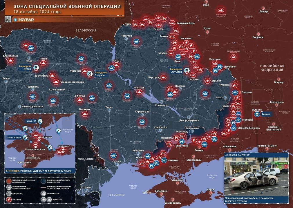 Обзор ситуации на фронтах специальной военной операции (СВО) на Украине, последние новости от 19 октября 2024 года, а также свежие карты боевых действий - в материале сайта N4k.