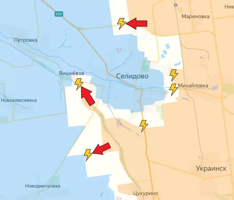 Так, на Покровском направлении, к востоку от Селидова, российская армия начала штурм территории шахты имени Д.С. Коротченко. Пехотные подразделения ведут наступление на территории Селидовского завода железобетонных изделий. В северной части Горняка российские войска продвинулись по нескольким улицам.