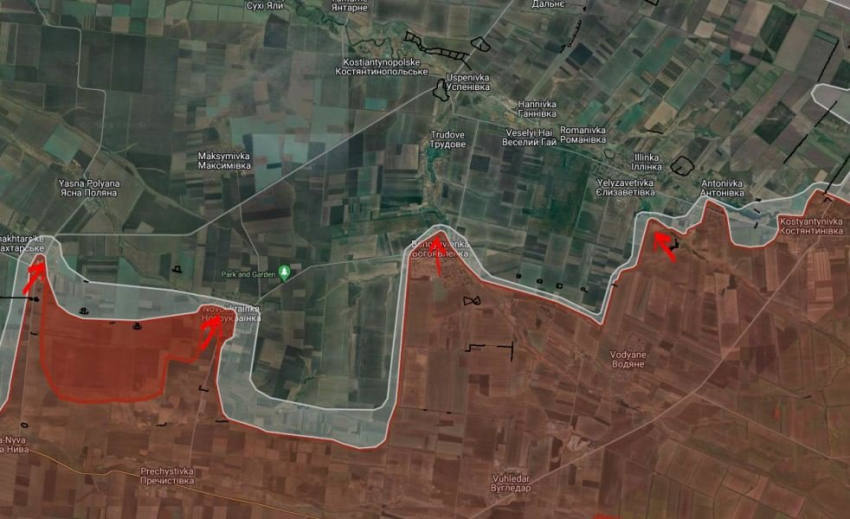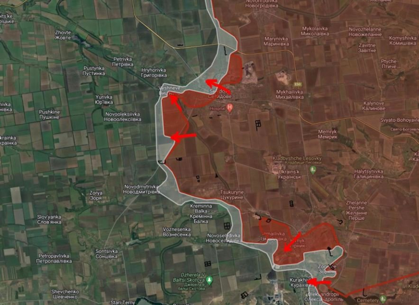 На Времевском направлении в районе Левадного и балки Грушевая российские войска имеют тактические успехи, продвинулись на участке шириной до 9.58 км на глубину до 2.06 км.