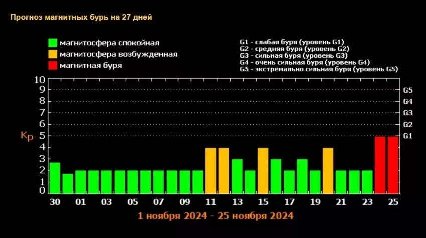 Прогноз магнитных бурь на ноябрь 2024 года