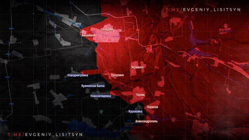 Город Селидово освобождён Армией России. Об этом сообщило и Минобороны России. Сейчас в городе проводится зачистка территории. К западу от Вишневого идут бои. Враг сообщает о продвижении ВС РФ в сторону Петровки. Южнее идут бои в Новодмитровке. Около половины населённого пункта уже за нашими бойцами. Также наши бойцы расширили зону контроля между Вишнёвым и Новодмитровкой, продвинувшись в сторону Новоалексеевки.