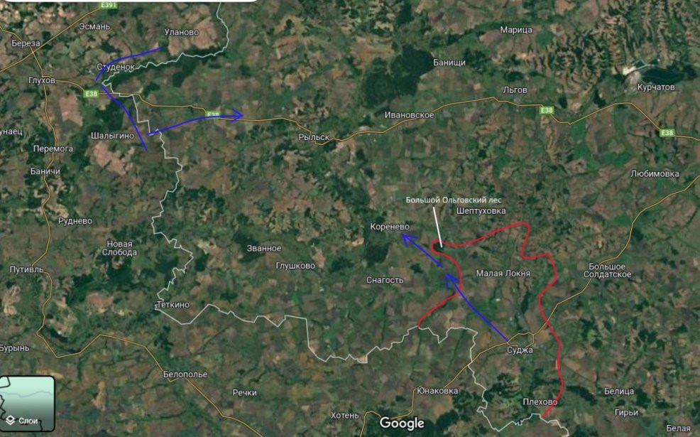 Во-вторых, противник локальным контрударом выбил нас из Новоивановки, а данные нашей разведки показывают большую концентрацию его сил (в т.ч. боевой техники, заправщиков и т.д.) в районе Суджи.