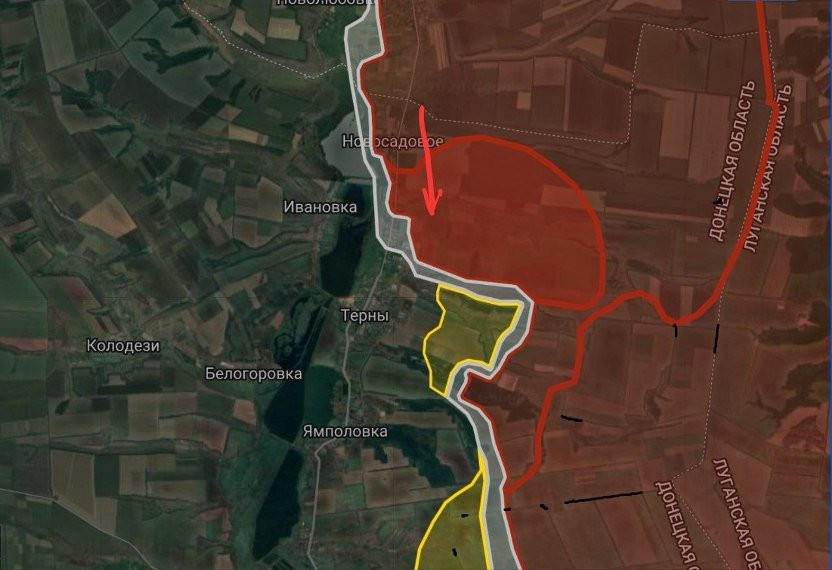 На Купянско-Лиманском направлении российские войска давят в северной части Тернов с опорой на Новосадовое, под контроль перешла территория на участке шириной до 4.45 км на глубину до 2.5 км.